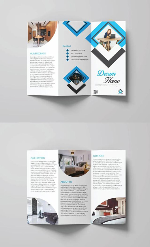 三折頁常用的尺寸有大16開(285mm×210mm,折后尺寸為95mm×210mm)和大8開(420mm×285mm,折后尺寸為140mm×285mm)。