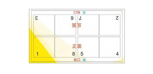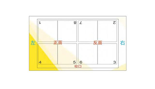 拼版中的專業術語,頭對頭,腳對腳。可以先用紙張折疊模擬標注頁碼與設計編排的左右順序后,再進行設計。切記,頁碼對應的文件編排的左右順序不一樣。頁碼順序不是連號,即設計時p1邊上不一定是p2不一定左邊是p1,右邊是p2。現在有自動拼版軟件,可根據裝訂方式,自動將小頁文件拼成大版。