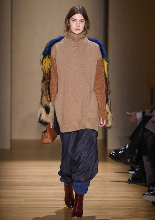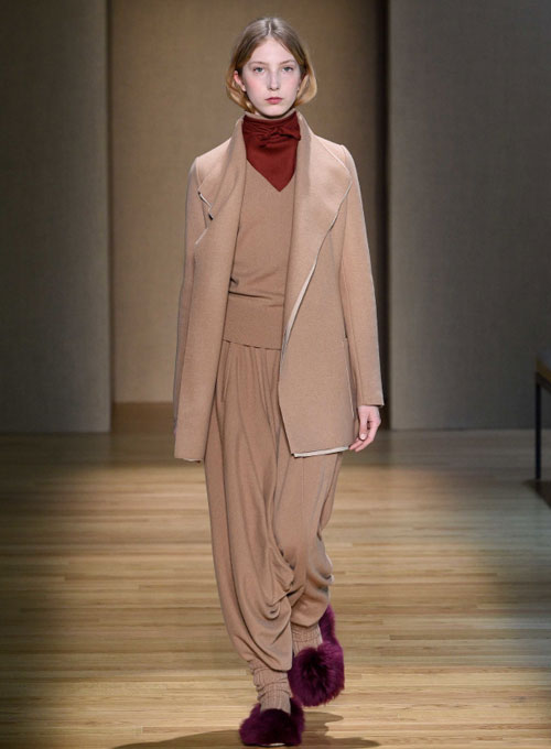 大衣寬松易穿,定制單品及禮服勾勒出修長身形,運動款則玩味叛逆分層設計更具游牧感靴款彰顯帥氣干練潛藏的佩斯利印花賦予了神秘的美感皮革工藝,皮草細節,以及珠飾花邊締造出精致的輪廓色彩涵蓋駝色、灰褐色、焦橙色、紫色、棗紅色、以及海軍藍和靛藍色面料包括雙面駝絨,雙面羊絨,羊絨和羊毛牛仔,雙羊毛貂,羊毛花呢,雙羊絨針織,珠飾駝毛針織,斜織馬海毛及斑片毛領。輕松自在才是奢華的真諦。