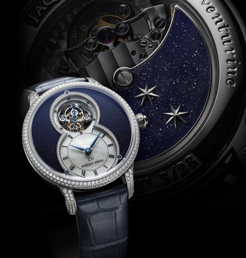砂金石表盤,鉆石鑲嵌白金內盤環,白色珍珠貝母中央針盤陀飛輪自動上鏈機芯