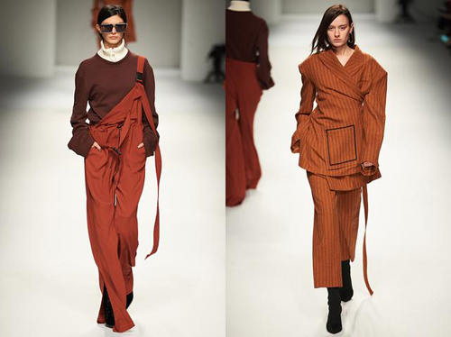 承襲一貫的精致、女性風(fēng)格,在設(shè)計(jì)感廓形的基礎(chǔ)上,Siastella還是保持了色彩的極簡(jiǎn)。黃褐、砂紅、蜜糖、焦糖、橄欖等飽和中間色調(diào)呈現(xiàn)出女性浪漫的感覺(jué)。17AW從自然感性的秋天色系和現(xiàn)代感的科技與感官色調(diào)兩個(gè)方向詮釋旅行主題,營(yíng)造出豐富的變化。旅行中自然風(fēng)景的靈感延展而來(lái),激發(fā)出溫暖濃郁的微妙的摩登復(fù)古感。而人文風(fēng)景靈感則帶來(lái)了金屬色、裸色、淺淡色調(diào)的加入,這些顏色互相混搭,朦朧、精致,呈現(xiàn)出微妙的層次感。