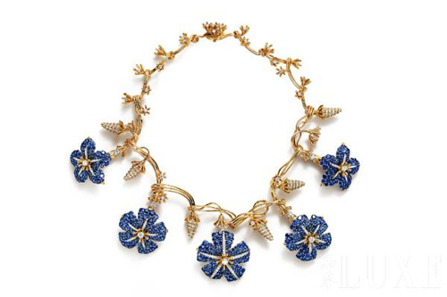 卡地亞以豐富手法呈現感官盛宴,將耀眼光澤與啞光質感相間,綴以精美尖晶石花瓣。如陽光般燦爛的花卉珠寶收斂尖刺,呈現溫婉姿態,于柔和的粉色光芒中散發至“針”魅力。