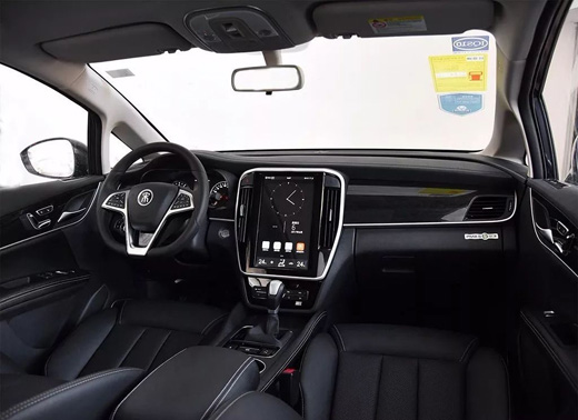 宋MAX車內布局采用比亞迪最新設計語言,運用長線條設計,簡潔、耐看,黑色調為主,并搭配包裹性極強的雙密度高級皮質座椅,營造出極具氛圍感的環抱式座艙。同時,大量使用搪塑軟質材料包覆,并搭配運用深色木紋飾板和金屬材料,質感和觸感十分出眾。中控臺配備了碩大的12.8英寸高清觸控大屏,采用基于安卓系統打造的CarPad系統,應用豐富,可玩性強。