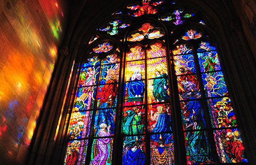 在參觀歷史悠久的西方建筑時,例如教堂或是伊斯蘭教的清真寺,我們常常被色彩斑斕絢麗的彩繪玻璃裝飾鎖住心神。這種世界藝術史上的閬苑仙葩,一直以極具韻味的身姿獨占鰲頭。而這種獨特的手工藝起源于歐洲中世紀的哥特式教堂。在彩色玻璃工藝發展的初期,因無法直接制造出純凈通透的大塊玻璃,所以當時匠心獨具的工匠參考了拜占庭教堂的玻璃馬賽克,利用彩色玻璃在窗戶上鑲嵌出一幅幅意蘊紛繁的圖畫,從而組成顏色繽紛的圣經故事。因為教堂內光線昏暗,主要的采光還是靠窗戶。當日光透過玻璃時光線的反差加大,在彩色玻璃的作用下產生瑰麗絢爛的景色。漸漸的,彩繪玻璃窗已經成為哥特式教堂建筑不可缺少的組成部分。“沒有了陽光,哥特式教堂中的彩繪玻璃也就失去了它的全部意義。”光線在基督教中一直被看作是上帝所賜,人們在所有造物中尋找神圣光線的痕跡實際上也是尋找上帝之跡。彩繪玻璃所體現出來的光耀之美,對于當時的大多數人來說就成為了上帝本源的暗示,一座與上帝靈通的橋梁。在這種感知論視覺美學理論的印象下,彩繪玻璃藝術所凸現出來的光線作用,自然而然地被罩上了一層神圣的外衣,同時也起到了向不識字的民眾宣傳教義的作用,具有極高的藝術價值。