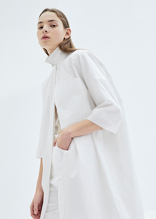 “less is more”——這句名言出自二十世紀中期著名現代建筑師密斯·凡·德羅,本意在于主張流動空間的新概念。事實上,衣物與人體之間的關系是流動空間的別樣演繹。less 2018春夏系列就是在此基礎上進一步升華,以“less is fun”少有趣味,重新解讀衣物與空間的定義,利用建筑設計中少而有趣的線條和廓形變化,變換出著裝的流動層次。