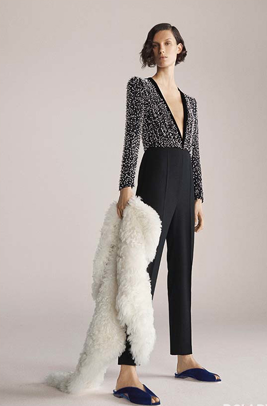 以黑、白、紅色和裸色為基調,塑造獨立果敢的形象。褶皺裝飾的上衣和連衣裙,或是搭配純色,或是搭配象征著太陽的漸變色效果,滿足日裝及晚裝的多種精致造型需求。除此之外,珍珠和水晶刺繡裝飾在裁剪極為精致的連體褲裝禮服上,打造出高貴又特立獨行的魅力風格。極具代表性的紀梵希紅色和幾何感十足的露肩上裝設計也是本季的亮點之一。
