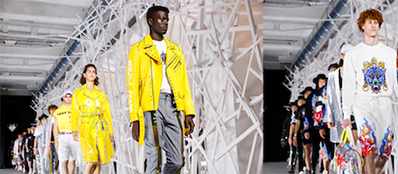 2019春夏,獨具創意個性的意大利潮牌WOLF TOTEM帶來的“藏狼”設計,汲取了藏傳藝術靈感,將當季流行和藏族文化符號解構再重組。藏族的建筑藝術、文字與琳瑯豐富的服飾元素,通過廓形設計、異材拼接、撞色釘珠、絢麗印花等當季流行手法,形成了這一季獨具內涵的潮流風格。