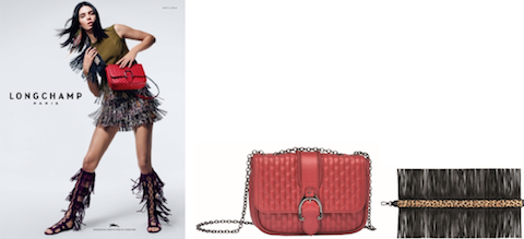 為捕捉 Kendall 的動人姿態,Mikael Jansson 充分利用系列中富有特色的流蘇元素,喚起這位活躍于公眾視野的Longchamp 女性由內而外的活力與自由。大片中的另一位“明星”是紅色襯墊皮革 Amazone 包袋,Kendall 將它斜挎在肩上,包帶飾有豹紋。此外,系列照片還展示了帶有夸張流蘇和蟒蛇紋的秀場款。