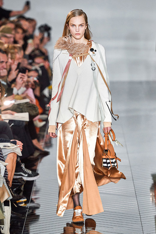 源于對細(xì)節(jié)和完美的追求,LOEWE羅意威2019秋冬女裝系列用聚焦追尋欲望的意義。化繁為簡,手工藝及流暢線條互相融合。通過肖像碎片,硬朗線條表現(xiàn)出鮮明的古典主義。藏紅花色、天藍(lán)色和朱砂紅則打破了單調(diào)的黑色、橄欖色、藏青色、駝色、乳白色和酒紅色。