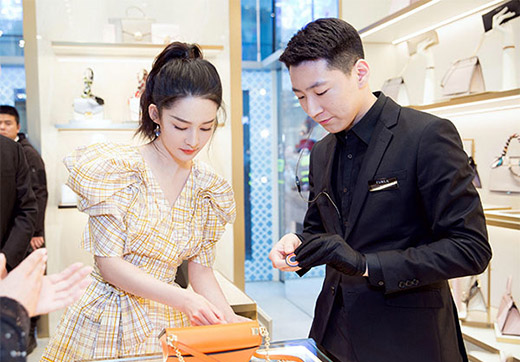 李沁作為開幕嘉賓,率先領略了全新店鋪的時尚魅力并親手定制專屬包袋。