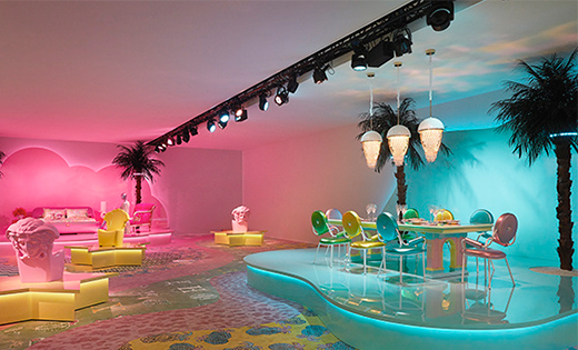 Sasha Bikoff 是美國(guó)室內(nèi)設(shè)計(jì)師,其美學(xué)靈感取材自紐約市及其成長(zhǎng)地邁阿密,糅合 18 世紀(jì)的法式洛可可 (French Rococo) 藝術(shù)風(fēng)格、1960 年代充滿時(shí)尚格調(diào)的太空時(shí)代風(fēng)格 (Space Age Modern)、1970年代的法式現(xiàn)代主義 (French Modernism) 及1980年代意大利米蘭孟菲斯風(fēng)格 (Italian Memphis Milano)。