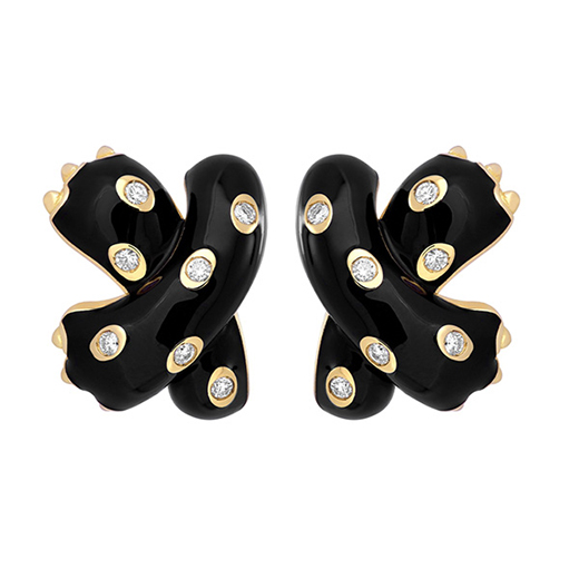 RED斐登Ombre Féline系列黑色漆面黃金鑲嵌白鉆耳環