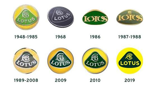 1986年,路特斯首次展示品牌標識,對比舊版本設計,新版本的徽標更加簡約化,取消了圖標的襯線,并且路特斯的名字不在彎曲,而是坐落在一條直線上。此外,標識背景依舊采用黃色,字母背景采用英國賽車上所呈現的綠色色調。