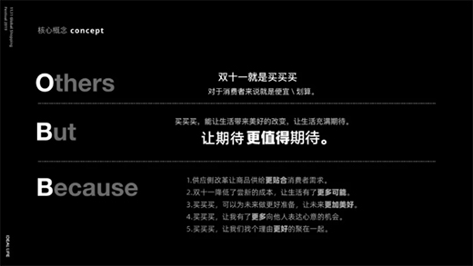 但,這些洞察還只是幫我們理清了消費(fèi)行為背后的共性規(guī)律,實(shí)際上,細(xì)分到每個(gè)消費(fèi)者,因?yàn)樯矸萁巧罘绞降牟煌瑒?dòng)因各自不同,還不能簡單的用向往更好的生活來概括,因?yàn)樗橄螅犐先Γ總€(gè)消費(fèi)者更關(guān)心的是我的需求是不是被滿足,而對于雙十一來講,我們就是要打造屬于每一人的雙十一,而不僅僅只是購物,這樣它才具有節(jié)日的文化屬性。