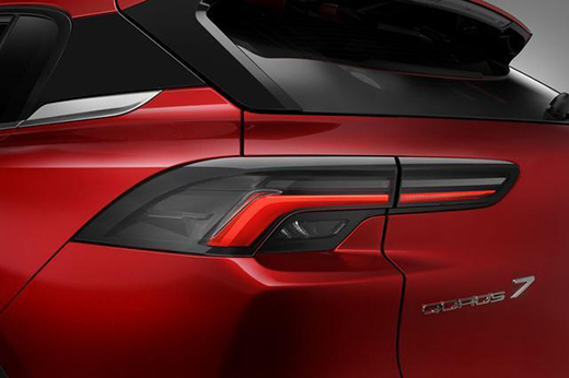 車身側(cè)面, 圓潤而飽滿的線條加上不拘格的C柱設(shè)計,構(gòu)成精妙的懸浮車頂效果,鋒銳的曲棍球桿造型貫穿車身與尾門,凸顯出觀致7的力量與動感。協(xié)同家族式的界鋒銳前臉和尾部簡潔設(shè)計一氣呵成,創(chuàng)造了鋒芒銳動的觀致美學(xué)觀,動靜間顛覆想象。讓光與影的交織營造出獨特的視覺享受。
