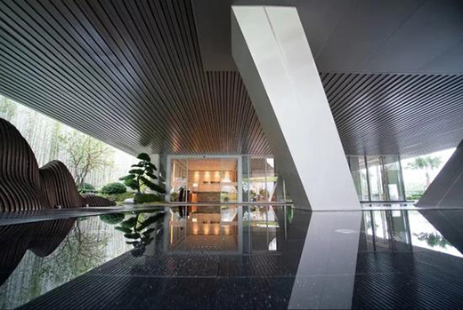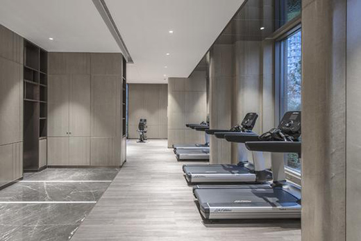 跑步機上方的棚頂運用鏡面不銹鋼,拓寬了視覺的邊界,使得整個空間在垂直方向上得以進一步的延伸,避免了業主在跑步時產生的單調及枯燥感,兼顧了實用性和觀賞性,建筑的功能需求和美學需求在此天衣無縫地合二為一。