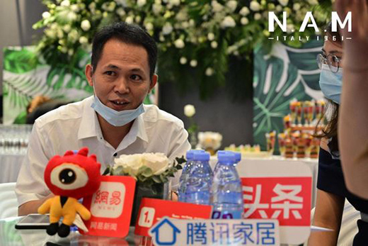 科技感十足的“硬核”展位設計,也吸引了來自今日頭條、網易家居、新浪家居、騰訊家居、太平洋家居等一線主流媒體的關注,并邀請意大利N.A.M品牌亞太區總經理戴文周就品牌的布局與規劃進行了訪談。