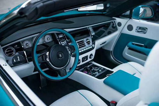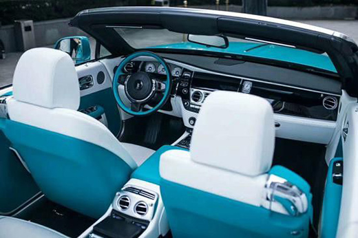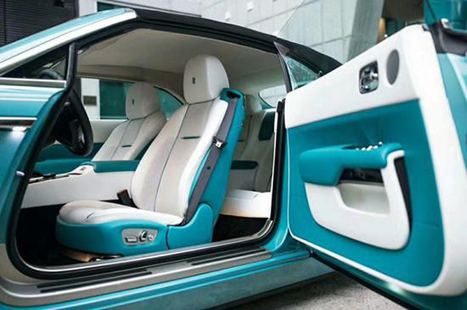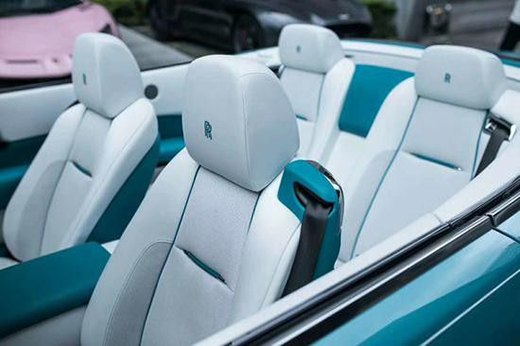 跑車軟頂的曜影可謂是勞斯萊斯家族中的閃耀公主,它的多色搭配私人訂制,勞斯萊斯對皮質的選擇極端苛刻,他們只用歐洲牛,而且最好是高海拔地區,牛很少生蟲,不會被柵欄刮傷,從而保證真皮的品質,大概需要450塊不同部位的牛皮,才能制作一臺曜影。