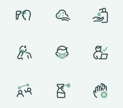 下圖所示,圖標(biāo)的輔助法則是綠色部分。在圖標(biāo)中它們代表的是行動(dòng)或者結(jié)果,作為事物主體的補(bǔ)充。而有了這樣的輔助圖形存在,圖標(biāo)變得更有特點(diǎn),更容易被記住。