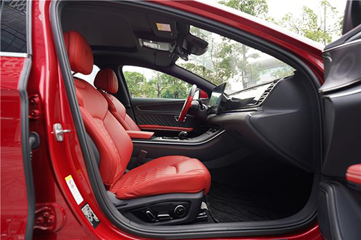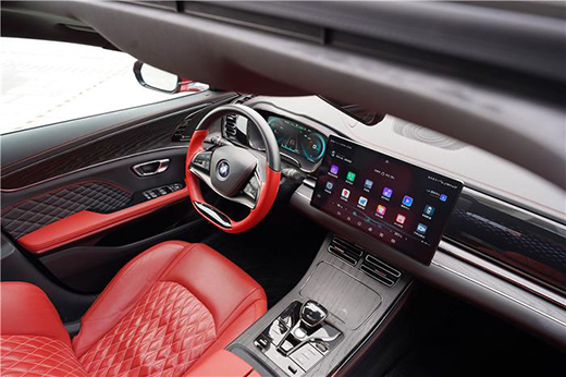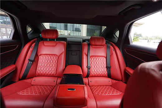 漢EV采用Nappa真皮包裹,手感是毋庸置疑的,只是表面的菱形縫線給人感覺為了高級才加上去,沒有經過合適的比例搭配,顯得有些用力過猛。不過舒適度和功能性是沒有問題的,座墊填充物柔軟且厚實,靠背對于身體支撐到位,配合上通風加熱,長途出行沒有任何問題。后排同樣如此,座墊長度足夠,地臺也沒有因為電池組的原因而抬的特別高,與傳統燃油車沒有區別。中央扶手放下來有一塊屏幕,功能比較常規,主要是針對空調、多媒體等一些舒適性配置。