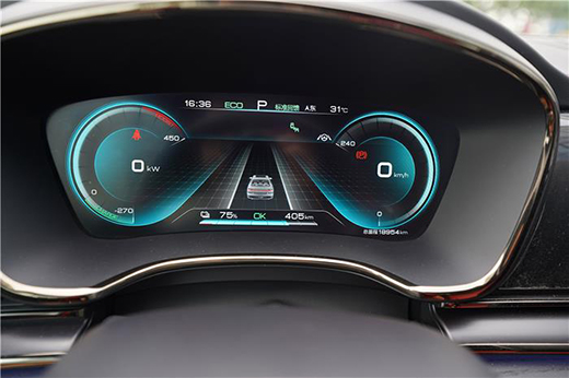 方向盤使用雙輻式設計,手感比較厚實,大小間距也適中,兩側帶有多功能按鍵,可以控制多媒體、自適應巡航等功能。后方的液晶儀表為12.3英寸,顯示效果出色,提供三種主題風格選擇,滿足不同駕駛員的風格喜好。