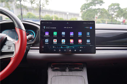 可旋轉的中控屏是比亞迪的傳統藝能了,而且大小也達到15.6英寸,看什么都非常清晰,也不容易造成誤觸。內置DiLink 3.0車機系統,個人感覺主界面欠缺一些色彩,黑色背景相較于白色背景少了一些科技感。當然了,在功能方面絕對是沒有問題的,原車自帶酷我音樂、百度導航,同時還內置了應用商店,可以自行下載對應App使用,甚至看B站、刷抖音都能實現,平時充電時可以用來打發一下時間。