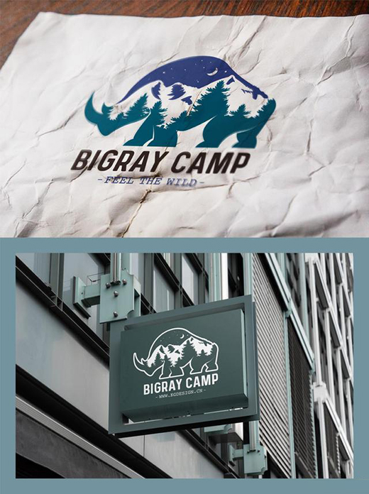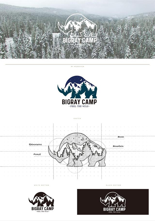 設計采用了犀牛來表達品牌產品的質量堅固與戶外性質。同構的內容則來自于委托人最喜歡的一副風景照片——安塞爾亞當斯的《月升》