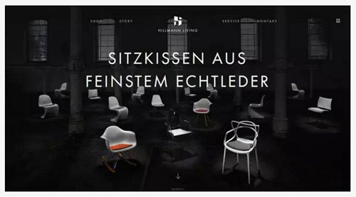 Hillman Living 的首頁(yè)采用了一張看起來(lái)略顯荒涼單調(diào)的圖片來(lái)營(yíng)造冷峻的氛圍,同時(shí)用顯眼的暖色調(diào)來(lái)點(diǎn)綴,與整體的氛圍構(gòu)成對(duì)比,緊緊抓住用戶的注意力,讓用戶注意到圖中獨(dú)特的椅子。
