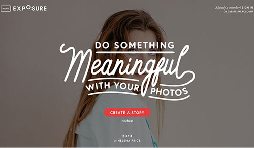 如果你喜歡攝影和講述故事,你就會喜歡Exposure。他們是一個照片平臺,充斥著全世界人們不可思議的照片故事。頁面很簡單,但焦點很清晰地落在了照片上,這點很有利。搭配上干凈鮮明的非襯線字體,頁面效果就會非常好。