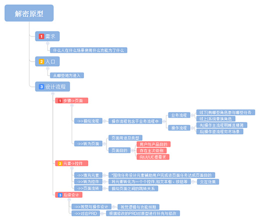 那如何從哪些方面系統地去畫原型?在實踐與學習之中,我個人總結為3個步驟。下面貼出我的思維導圖: