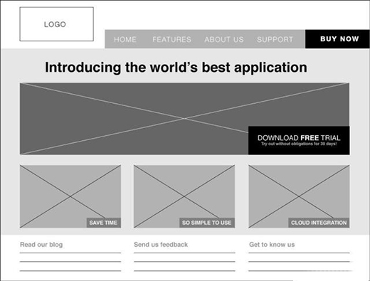 網(wǎng)站線框圖僅僅是我們希望如何在網(wǎng)站上展現(xiàn)各種模塊的想法。