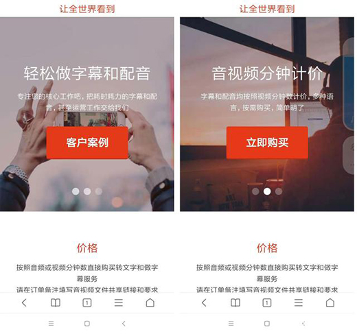 頭圖是訪客進入網站后看到的重點信息,所以一定要設置得簡約吸睛,讓訪客能立刻明白你是做什么的。比如下圖中的字幕網站,使用輪播圖作為網站banner,言簡意賅說明自己的主營業務,并提供購買通道,而且頭圖背景設計得非常美觀、有吸引力,這樣就能夠引起訪客興趣,有利于增加轉化。