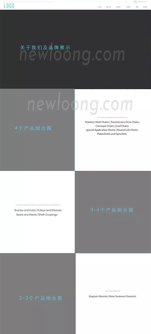 根據不同的表達和溝通需要,線框圖可以從復雜到簡單。下圖是一個企業網站的簡單線框圖,用于表達頁面布局: