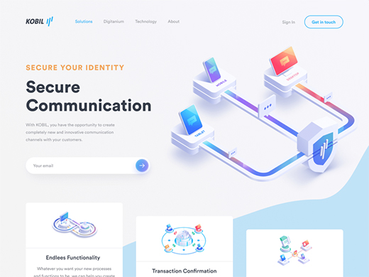 在極簡主義的標題設計中,只有網站重要部分的鏈接和公司 Logo 才會被展示出來。這個技巧在設計著落頁時非常有用。