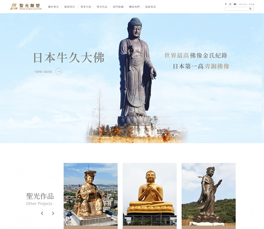 另外一個滿版的案例是圣光雕刻,滿版網頁設計的視覺搭配了大量的留白,網頁沒有被滿滿的圖文擠滿,而是圖文內容以和諧的方式呈現,與文物的質感相互呼應,雖然用戶得多花一點時間卷動網頁,才能看到完整的內容,但訪客會更樂于停在網站上閱讀內容,對于網站的客戶停留時間指標來說,會帶來一定的幫助。