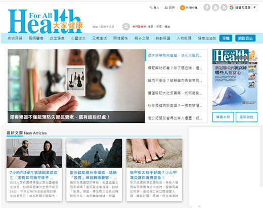 另外一個例子:大家健康雜志,是以紙本雜志為出版事業主體,后打造官方入口網站。從紙本的雜志延伸的官網,在首頁的呈現使用了顯著的區塊做出內容區隔,類似報章雜志的專欄設計風格,可以更容易與紙本的媒體有視覺上的連結。