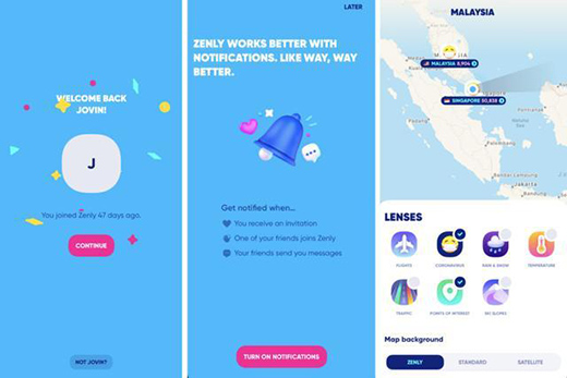 Zenly:國外知名產品,在引導頁面設計時候運用紅色按鈕吸引用戶注意,在App主頁面里面,通過深藍色強調選中效果以及Tab。