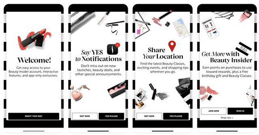 絲芙蘭App的設計,在引導頁采用一個襯線體非常有品位,通過字體大小,和字重對比,再配合美妝護膚的行業屬性,頁面非常的簡潔大氣,有對比有細節。