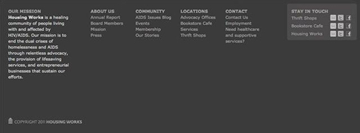 頁腳是您如何在不妨礙設計的情況下通過大量信息與觀眾聯系的方式。由于頁腳位于頁面底部,因此它是放置小型站點地圖、公司或聯系信息、鏈接和站點上下文的合理位置。
